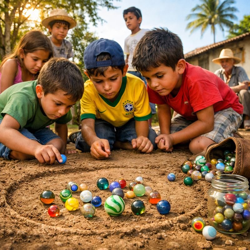 Além disso, as bolas de gude promovem o raciocínio estratégico. Durante os jogos, as crianças precisam analisar o tabuleiro, antecipar movimentos e desenvolver planos para vencer, o que estimula o pensamento crítico e a resolução de problemas. Essa capacidade de formular estratégias e fazer escolhas é um componente vital do desenvolvimento cognitivo e pode ser transferida para outras situações da vida cotidiana.